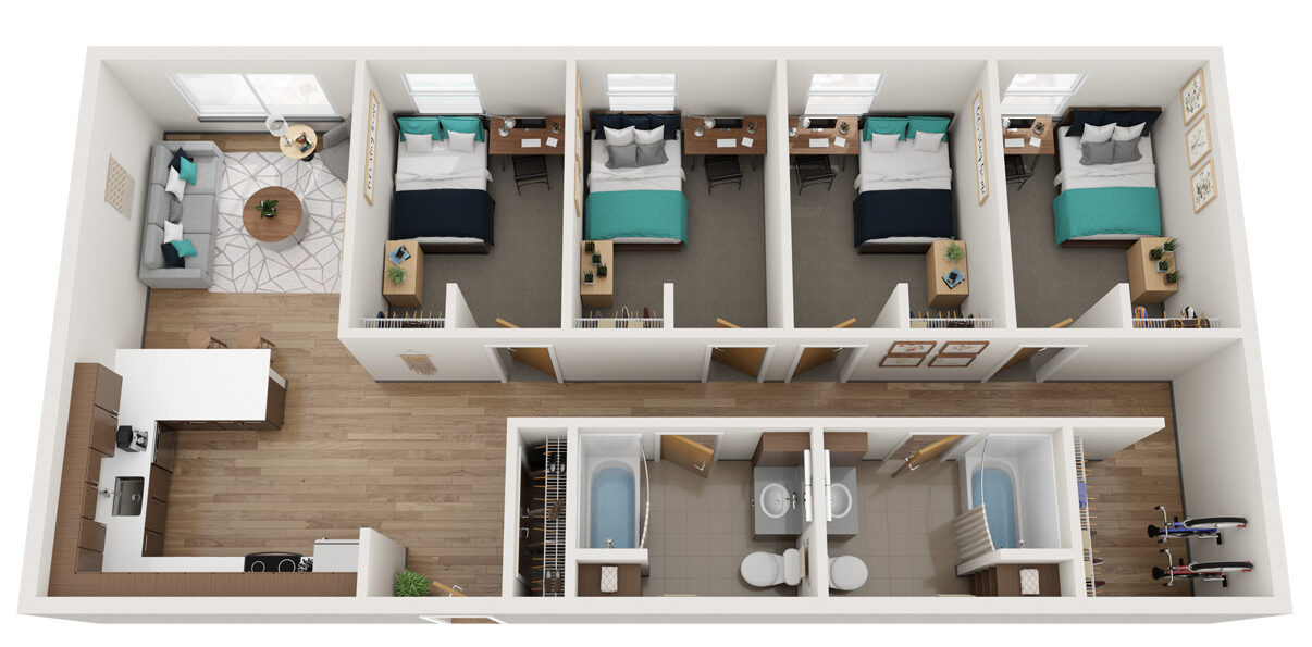 The development of Bellingham’s newest off-campus housing minutes from Western Washington University is well underway with a scheduled opening in fall 2021! Our student-focused community is designed by award-winning architect, Mithun; serves as the first building in Bellingham to be Fitwel Certified; and has a LEED Silver Certification.